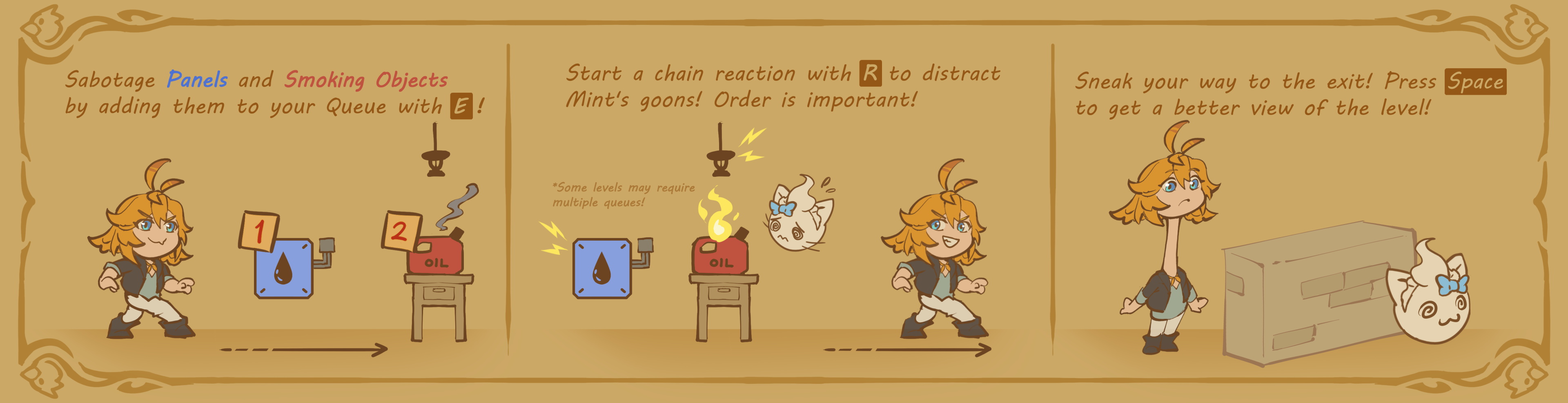 DOKI'S MOST WANTED is a stealth puzzle game where you navigate through a myriad of floors from Mint's grand castle! Avoid the eyes of the Wisps as you perform the ultimate heist. Many obstacles stand in your way, but you've got a few tricks up your own sleeve as well...